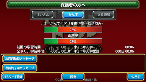 「クエスト」や「チャレンジ」などのON/OFFを設定することで、ドリルと図鑑しかできないようする(ゲーム部分だけ遊べなくする)こともできます。