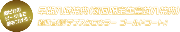 早期入隊者には、特典として地底における対巨大生物の切り札として新たに投入された搭乗兵器「デプスクロウラー」の金色に輝く指揮官機を授与し、指揮官待遇で入隊を歓迎する。
