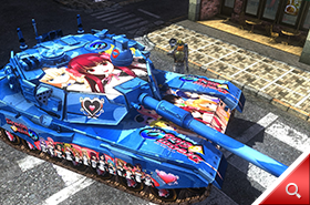 特殊なペイントが施された戦闘車両。車体には美しい女神たちが描かれている。被弾率が下がるとの噂を信じた兵士が、自ら塗装をおこなった。命がけで戦う兵士にとっての、一種の「願かけ」であろう。