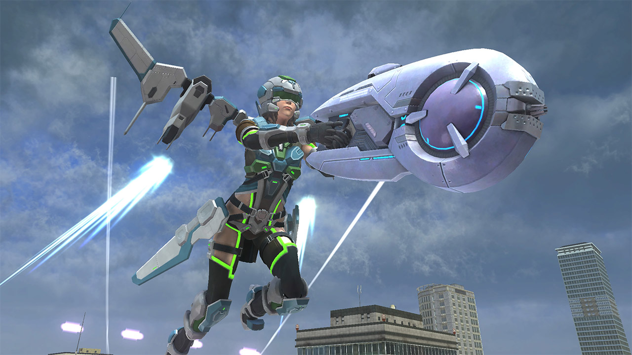 In 2017, an unidentified flying object flies over Tokyo and launches an indiscriminate attack. Overwhelming technology and vast numbers of giant creatures attacks the Earth. Humanity is once again in danger of extinction. The first Xbox 360 version was also the first full-price title in the series. With a completely new world setting, the title focuses on the story of the Forliners. This was the first version to imploy HD graphics which intensified the battles with giant creatures. Although the only playable soldier class was the Soldier, many NPCs were added to the game allowing for squads. The military feel of the game was increased with fighting in numbers.