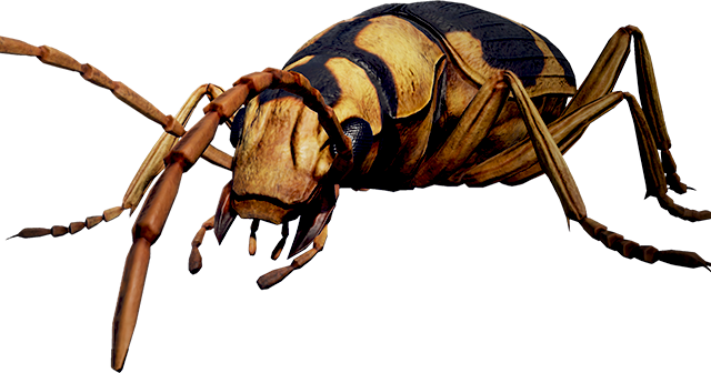 ストームアントに混じって出現する、ミイデラゴミムシに似た姿の巨大生物。