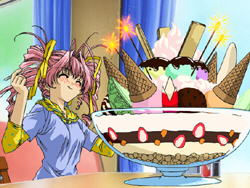 | ▲ ファミレスで、ちょっとおやつでも・・・。 ってこんなに大きなパフェ、食べきれるの!? 2003年5月から8月の間に発生。 |