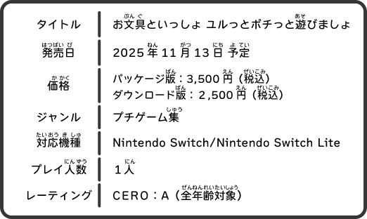 大人気SNS発キャラクター『お文具といっしょ』がNintendo Switch™に初登場!人気のあのシーンを再現したプチゲームできゅうきょくの癒し体験!